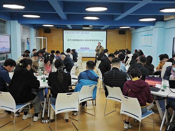沈娜对新学期的教学和科研工作进行了详细部署。她指出,在专业建设方面应查漏补缺,全力打造一流课程,持续推进一流专业建设;强化校企协同,深化产教融合教育,进一步凝练应用型人才培养特色,同时要对标对表,从团队队伍建设、教学资料、实践教学、后进生帮扶等方面着手,扎实推进合格评估工作。在科研工作方面,沈娜提出,本学期学院继续将省级普通高校“协调新能源的数字电网技术工程研究中心”建设作为重要任务推进,鼓励各位教师借此平台积极进行项目申报。此外,学院还将进行本科教学工作合格评估、硕士点申报等教学和团队建设工作,希望全体教职工都能上下同心、共同努力,切实促进学院发展。
