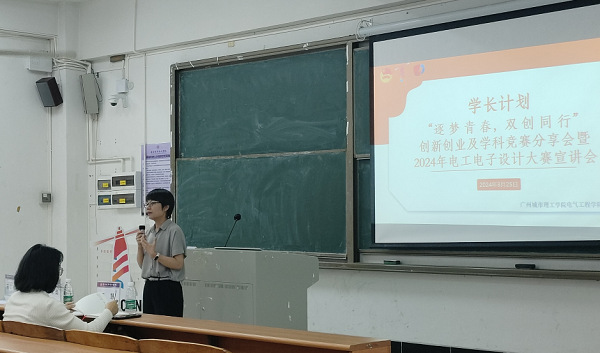 分享环节上,林国武结合参加第二届高校电气电子工程创新大赛的经历提出,想要打好一场比赛,就必须从心态上做好参赛准备、从行动上做好参赛安排。在有经验的老师和同学的指导下与团队成员做好配合,多次复盘和总结,有条不紊地推动项目的进程。最重要的是要保持自信、勇于尝试,要有坚持下去的决心。随后,李彤就自己参加第六届国际能源、电气与动力工程会议(CEEPE)的经历进行分享,并提出敢猜想、敢发问、敢学习、敢参与、敢落实的“五敢”建议,鼓励大家善于学习、勤于实践,不虚度大学时光。最后一位发言的胡立轩分享的则是参加中国创新创业成果交易会的心得。她认为光储热伏集成化温控系统这一成果得以落地、团队最终能够站在创交会的领奖台上,是所有人夜以继日、不懈努力的回报,并以“沉淀自己,顶峰相见”这八个字与在场者共勉。