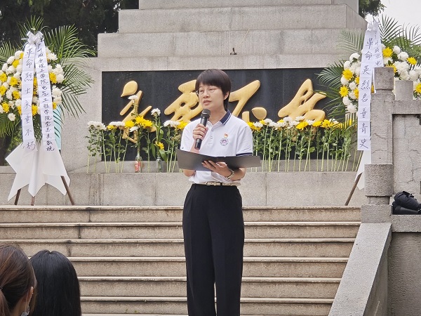 在纪念碑前,全体人员向革命烈士默哀,并依次敬献鲜花,深表哀思。随后,员工党员代表林荣浩诵读致敬词。从近代的夏明瀚谈到当代在中印冲突中牺牲的战士,“英雄是史册上闪闪发光的名字,是无数无名者共铸的丰碑。他们的功绩,祖国不会忘记,人民不会忘记!”他饱含激情、掷地有声,表达了对先烈的崇高敬意和深切缅怀。城北公司团支部副书记黄敏仪则表示,烈士陵园祭扫活动是一场心灵的洗涤和思想的洗礼。作为新时代的青年,要传承先烈们的革命精神,从各方面提升自我,为实现国家富强、民族振兴、人民幸福贡献自己的力量。