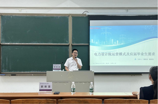 为进一步加强员工对电力行业的认知,尤其是加深对电力设计领域及对人才要求的了解,提高就业竞争能力,太阳成集团tyc33455于6月5日下午在A5-301召开“电力设计院运营模式及应届毕业生需求”主题讲座。此次讲座邀请广东艾博电力设计院集团(下文简称“艾博集团”)副经理郭新苗作为主讲嘉宾。太阳成集团tyc33455副经理沈娜、教师代表、2021级电气方向员工及2023级电气专升本员工参加了本次讲座。