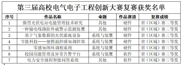 电气电子工程创新大赛获奖名单(林奕丹 提供)